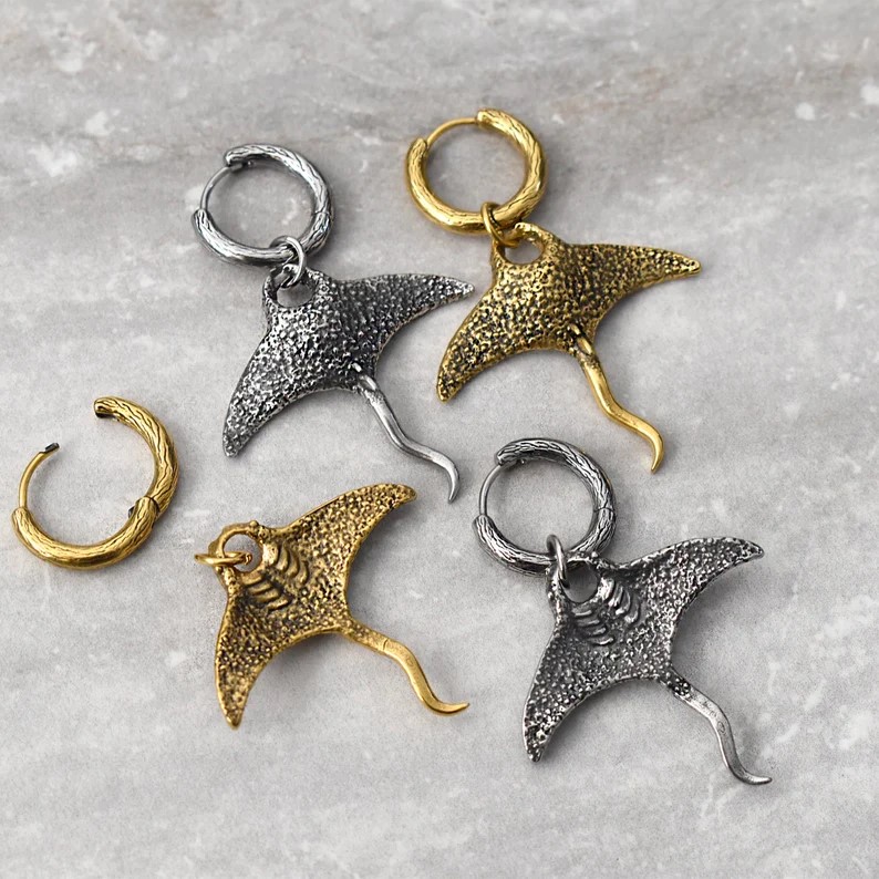 Дизайнерская моносерьга "Мифический скат" – стильный и оригинальный аксессуар от StarfallShop в морском стиле. Украшение в виде морского ската доступно для заказа на Wildberries по арт. 182662040 и на Ozon по арт. 1222391165. Роскошные готические украшения в виде морских обитателей широко представлены в коллекции Старфоллшоп - выбирайте своё любимое!