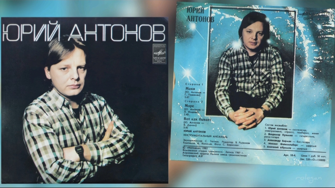 ЮРИЙ АНТОНОВ. 1982 - МАКИ. EP (АОЛЗГ) Мелодия С62—17631-2 Matrix / Runout (Side A): С62-17631/4-1 Matrix / Runout (Side B): С62-17632/4-1 ГОСТ 5289-80 Гр. 3. 1-35 Винил, EP, Стерео, 33 1/3, Миньон, White labels Страна: СССР Записан / Выпущен: 1981 / 1982 Жанр,стиль: Pop Rock mp3 320 кбит/сек. 74.6 Mb Продолжительность: 11:55 СОДЕРЖАНИЕ: СТОРОНА 1 01. Маки (Ю.Антонов - Г.Поженян) - 05:41 СТОРОНА 2 02. Море (Ю.Антонов - Л.Фадеев) - 02:39 03. Вот как бывает (Ю.Антонов - В.Дюнин) - 03:35 Юрий Антонов - синтезатор, электропиано, стрингс, тамбурин, вокал Владимир Кузьмин - гитара-соло, ритм-гитара Александр Бирман - бас-гитара Михаил Файнзильберг - ударные Анатолий Абрамов - ударные Звукорежиссер С.Теплов Редактор В.Рыжиков Художник А.Колосов Фото С.Борисов МИНИСТЕРСТВО КУЛЬТУРЫ СССР Всесоюзная фирма грампластинок (С)"МЕЛОДИЯ", 1982 Всесоюзная студия грамзаписи. Запись 1981 г Апрелевский ордена Ленина завод грампластинок Типография АЗГ olryabinin.narod.ru