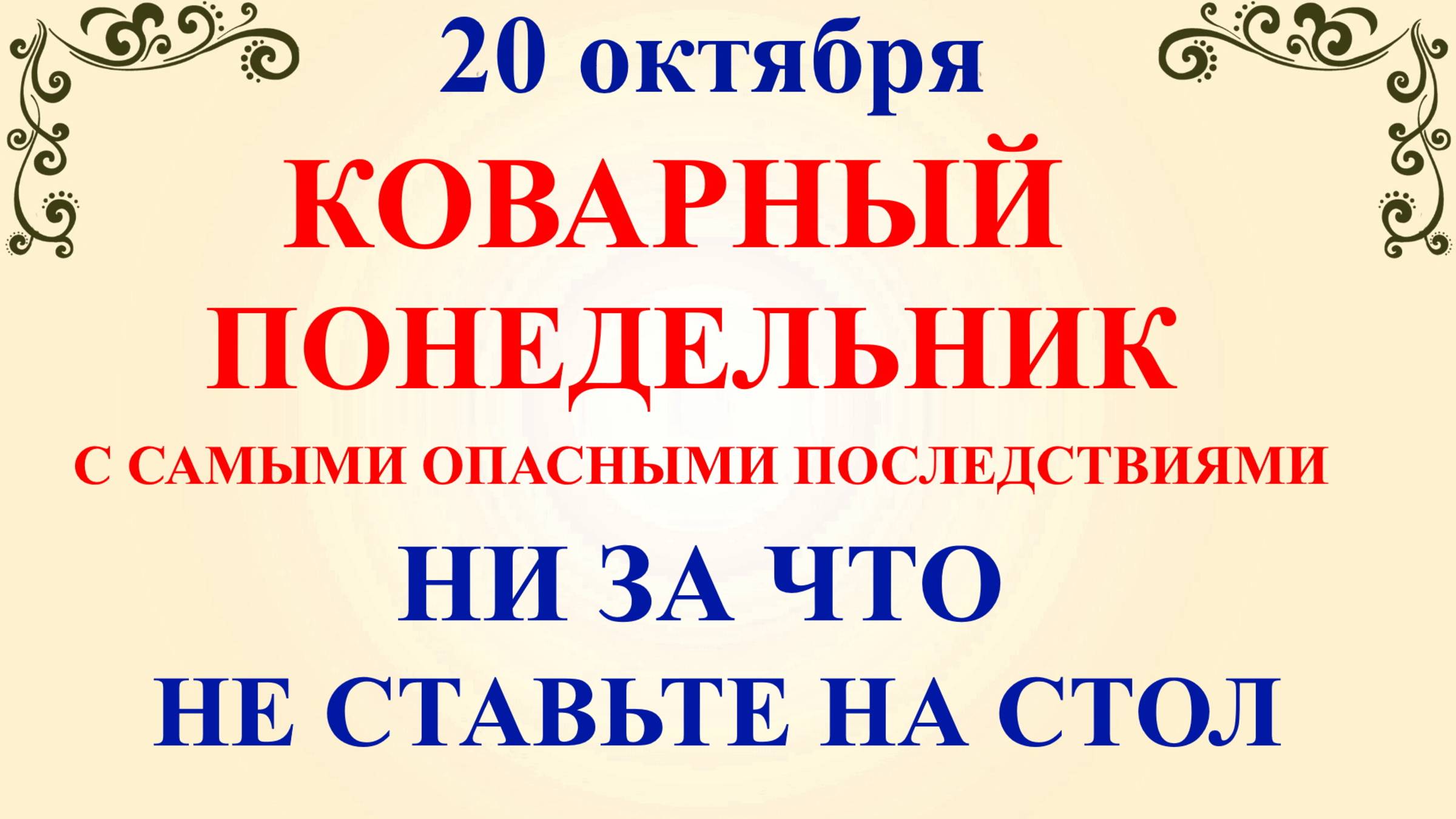 20 октября народный праздник День Сергия, Сергий Зимний. Что нельзя делать 20 октября. Народные традиции и приметы и суеверия 20 октября. По церковному календарю 20 октября чтут память двух преподобных с именем Сергий Печерского и Нуромского, и двух мучеников Сергия и Вакха. Еще в этот день православная церковь празднует икону Божией Матери «Умиление» Псково-Печерская. В народе праздник называют Сергий Зимний или более по-простому зазимки! В старину практически всегда в этот день шел снег и было достаточно холодно! Если Вам понравилось народный праздник День Сергия, приметы погоды 20 октября праздник, какой сегодня праздник отправить по Viber, whats app, а также поделиться в социальных сетях vkontakt, odnoklassniki! День Сергия 20 октября ссылка на видео на нашем Ютуб канале: https://youtu.be/2WJYS3XAXMU ✅ Подпишитесь на Народные Праздники в Телеграм https://t.me/nprazdniku Благодарю за подписку! Подписывайтесь на канал прямо сейчас!❤️️❤️️❤️️ОБЯЗАТЕЛЬНО нажмите на колокольчик 🔔. Все изображения и музыка в видео используются по лицензии CC0 Creative Commons, так же содержатся видео и фото из личного архива. Видео на канале создано по принципу FAIR USE. Фото и видео обрабатываются в видео и фоторедакторе, таких как Movavi Video Editor, Adobe Photoshop. Использование моих видео запрещено! Благодарю всех за просмотр! Будьте здоровы!