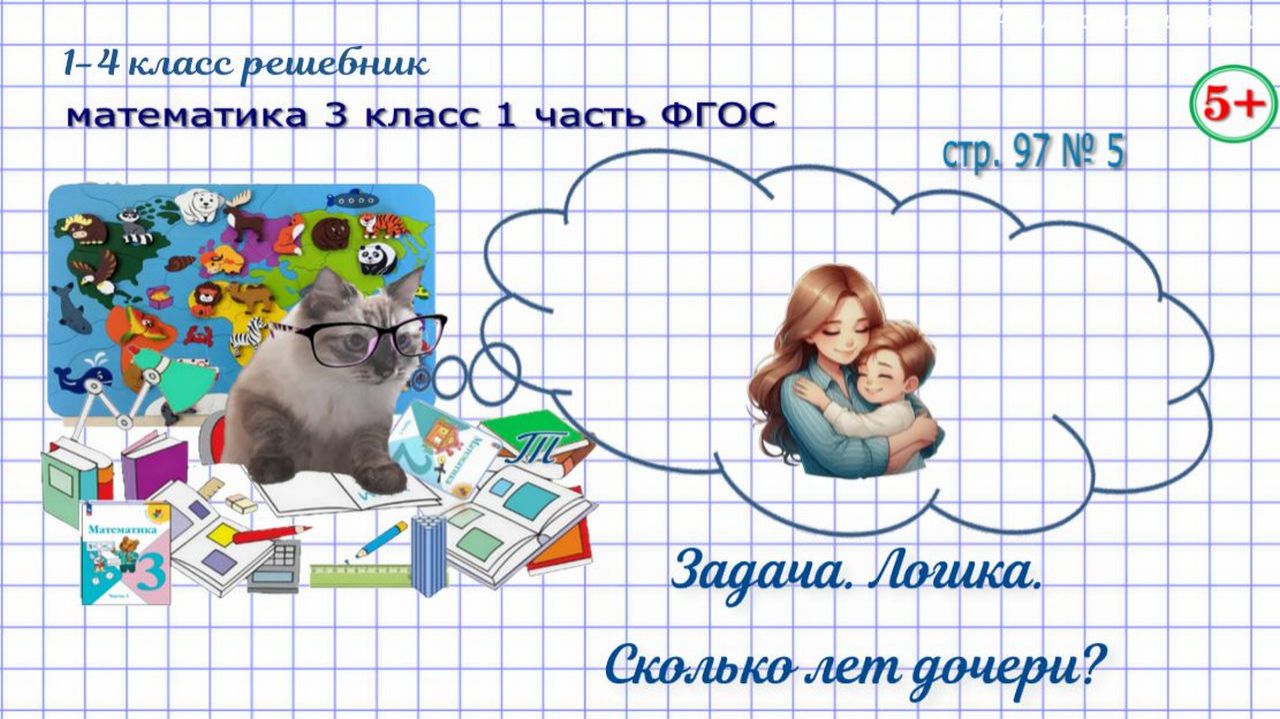 Логическая задача. Сколько лет дочери? ГДЗ страница 97 номер 5 математика 3 класс 1 часть Моро 2023 г ФГОС. Обучение детей. Начальные классы. Если нашли ошибку, напишите, пожалуйста, в комментариях. Сайт с текстовым содержанием: https://dzen.ru/id/650204661aba9b0ba4b2643e #обучениематематике#математика3класс1частьстр97номер5#логика#логическаязадача#скольколетдочери#обучениедетей#математика3класс1частьФГОС#математика3кл1чФГОС#математика3класс1частьморо2023#длядетей#решебникматематика3класс#гдзматематика3класс#начальныеклассы#1-4классрешебник+