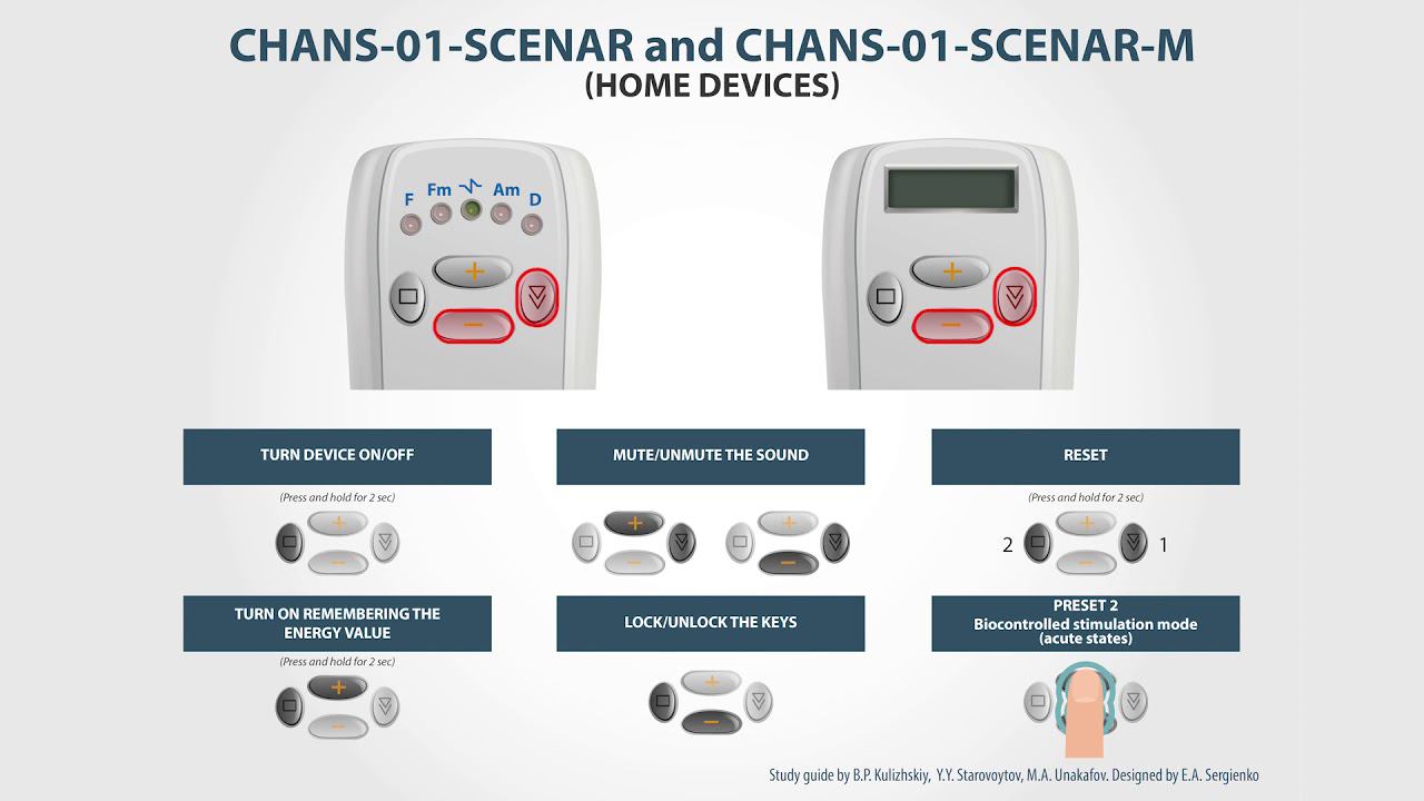 This video explains how to switch on or off the device and activate/deactivate different service functions, including the bio mode and a keyboard lock. With the locked keyboard the device can be placed under the target area while sitting or lying, which is good, for example, for the hard-to-reach areas of the back. Personal SCENAR devices. CHANS-SCENAR. Follow us on Social Media: Official website► https://scenar.com.ru/ Facebook ► https://www.facebook.com/groups/scenar.world/ Instragram ► https://www.instagram.com/scenar.world/ VK► https://vk.com/scenar.world OK ► https://ok.ru/scenar.world