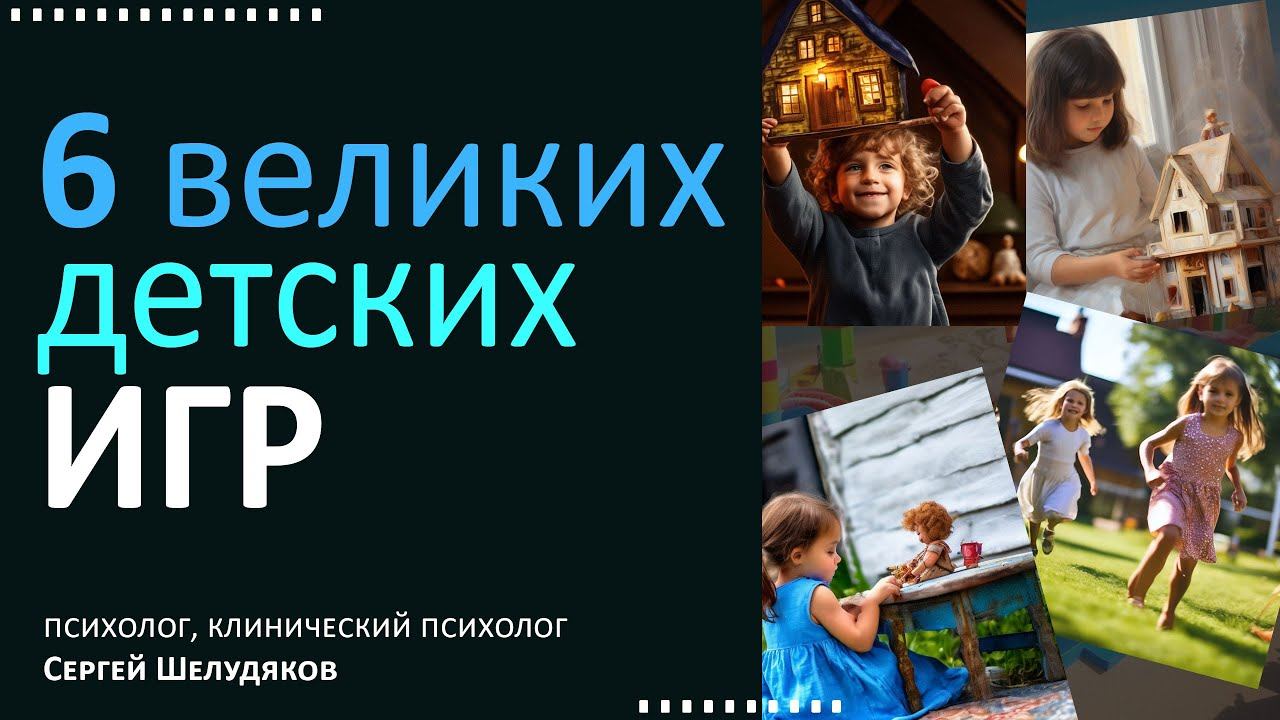 В этом видео я рассказываю о Шести Великих детских играх, в которые должен поиграть ребенок, чтоб пройти стадии сепарации. Рассказываю о том, как непрохождение той или иной игры, неполучение детского опыта влияет на взрослую жизнь и зрелость. 00:00 - Вступление. 02:15 - Великая детская игра: "Прятки". 05:13 - Великая детская игра: "Салки, догонялки". 08:24 - Великая детская игра: "Куличики, кубики", строительство. 11:12 - Великая детская игра: "Магазин". 16:13 - Великая детская игра: "Дочки-Матери". 19:46 - Великая детская игра: "Войнушка". Спасибо за внимание. Чтоб проще было отвечать на ваши вопросы - ставьте тайм-код того места, к которому задаете вопрос. Делитесь роликом с друзьями и в соц.сетях. Это очень помогает в продвижении канала. Написать мне лично можно воспользовавшись ссылками в профиле.
