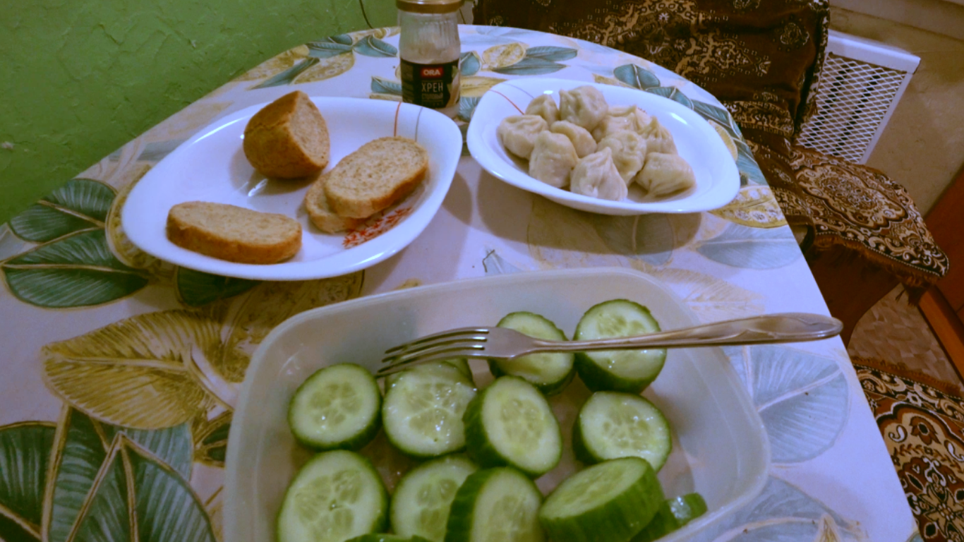 Хинкали с хреном и овощами. #мукбанг #фудблог #еда
