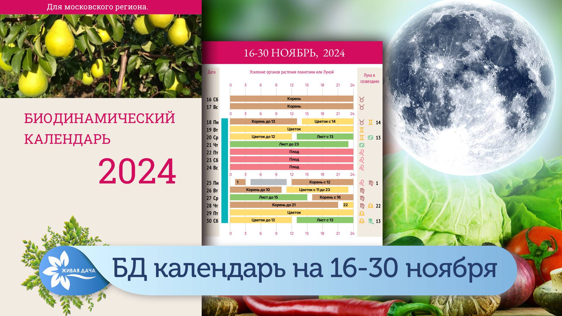 Биодинамический лунный календарь на вторую половину ноября 2024.