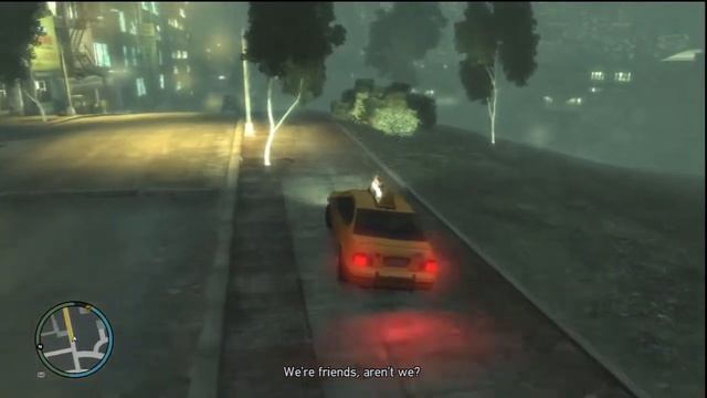 Eddie Low meets Niko at night time in Alderney city, Eddie asks for a ride to the docks, he needs to get rid of a large bag, after that you need to take him to westminster to complete.