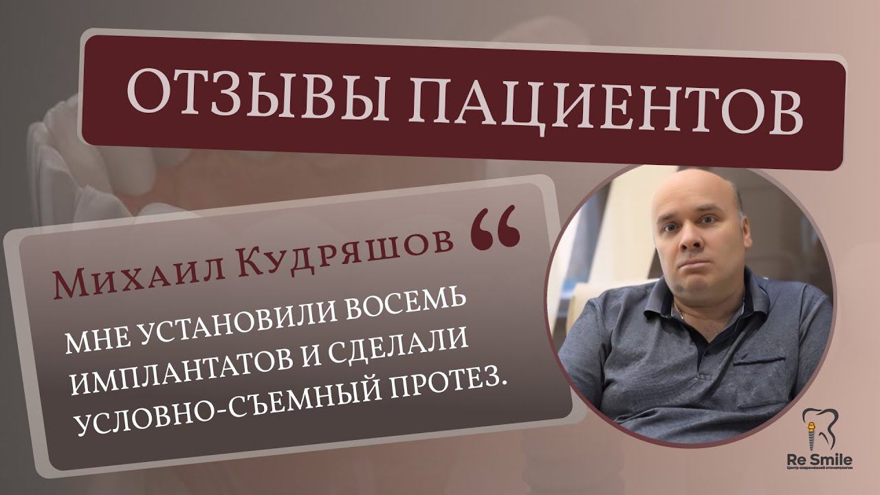 ОТЗЫВ Кудряшова Михаила Валерьевича. ПРОБЛЕМА: подвижность зубов на ВЕРХНЕЙ ЧЕЛЮСТИ.