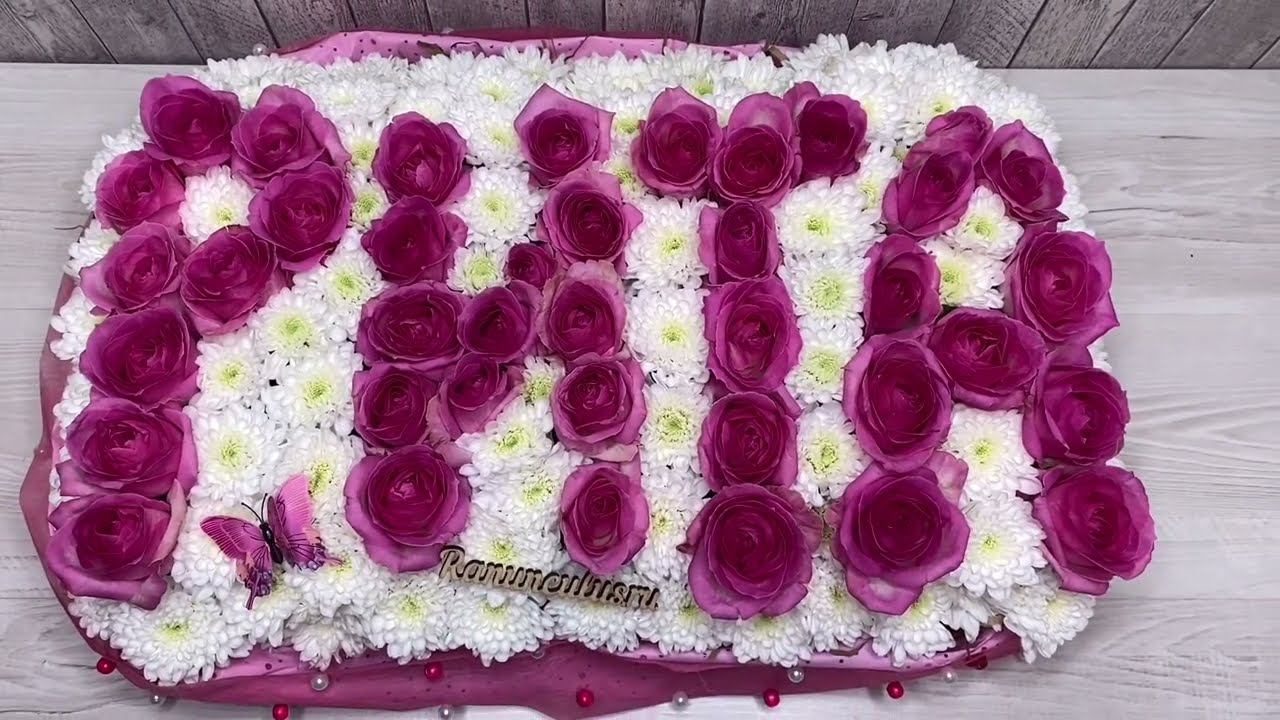 Панно из живых цветов с именем. Детальнее о товаре https://ranunculus.ru/tsifry-iz-tsvetov/imya-iz-roz-i-khrizantem// Смотрите также: Слова и цифры из живых цветов https://ranunculus.ru/tsifry-iz-tsvetov/ Наш интернет-магазин https://ranunculus.ru