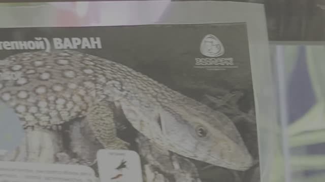 Вид экзотических земноводных Бородатой Агамы и Степного Варана в вольере.