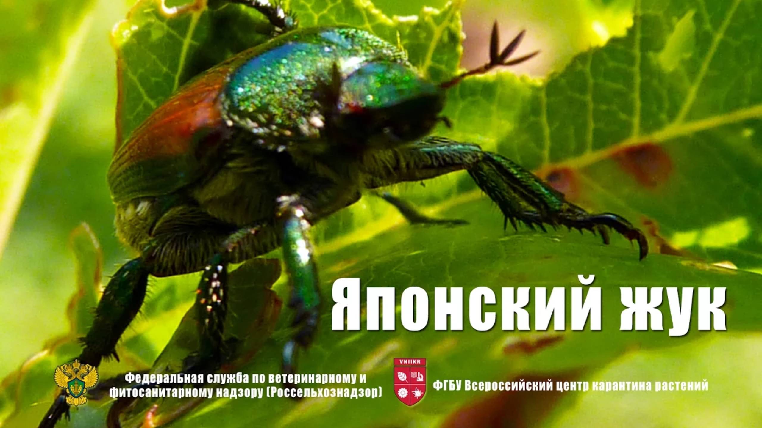 Японский жук (Popillia japonica Newm.) Японский жук Popillia japonica является опасным многоядным вредителем, который повреждает свыше 300 видов совершенно разных дикорастущих и культурных растений. Особенно большой вред причиняет плодовым деревьям и многолетним травам. Занесен в перечень карантинных объектов России ещё с советских времен. У нас японский жук отмечен только на Кунашире, самом южном острове Большой гряды Курильских островов. Японского жука там в достаточном количестве наблюдали ученые в совместной экспедиции Всероссийского центра карантина растений и Московского педагогического госуниверситета в 2011 году. Федеральная служба по ветеринарному и фитосанитарному надзору (Россельхознадзор). http://www.fsvps.ru/ ФГБУ Всероссийский центр карантина растений. http://vniikr.ru/
