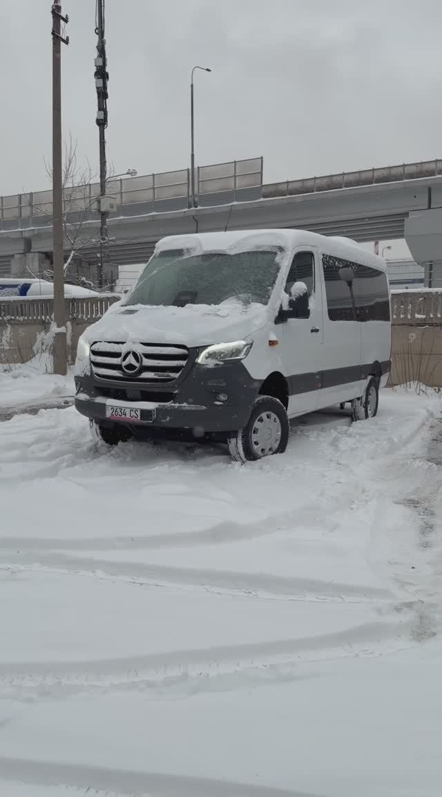 Сравнение заднего и полного привода Мерседес Спринтер на летней резине в снежную зиму.