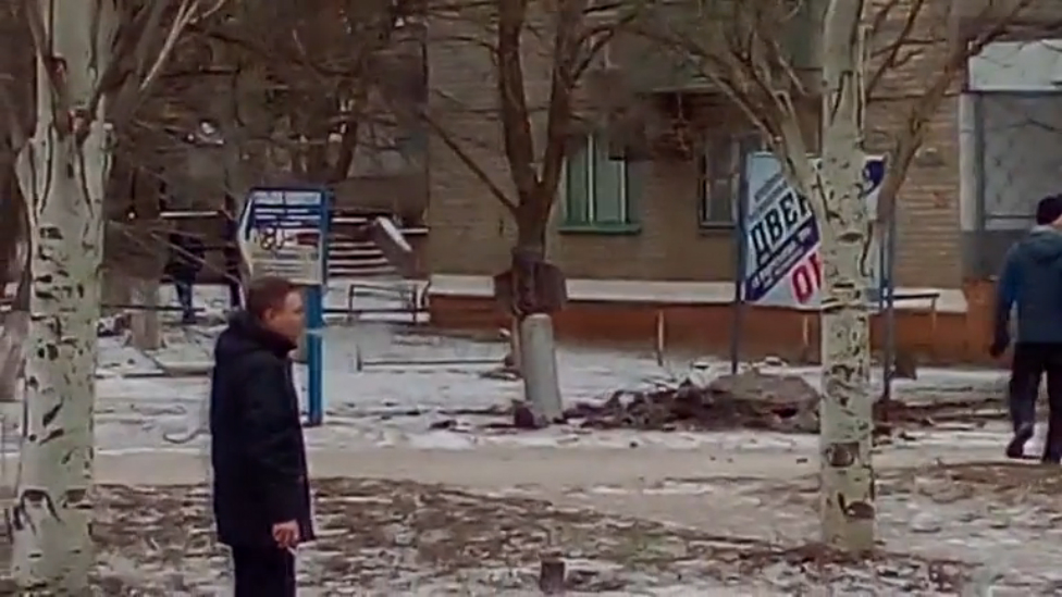 10.02.2015г. Краматорск. После обстрела болванка застряла посреди города.