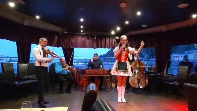 Отличный вечер на лодочке по Дунаю, с музыкой, песнями/танцами. Мелодии напомнили нам фильмы -оперетты. В детстве смотреть эти музыкальные фильмы было увлекательно, мелодичные, заводные песни, необычные костюмы и музыка 🥰.