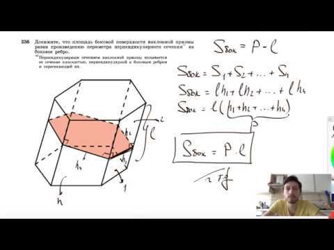 №236. Докажите, что площадь боковой поверхности наклонной призмы равна произведению периметра перпендикулярного сечения на боковое ребро. Поддержать канал рублём - 5469400944002125 (Сбербанк) Мой второй канал для подготовки к ЕГЭ и ОГЭ - https://www.youtube.com/ЕвгенийСумин Инстаграм - https://www.instagram.com/EGE_OGE.math Личный инстаграм - https://www.instagram.com/ee_sumin VK - https://vk.com/evgeniysumin FB - https://www.facebook.com/EvgeniySumin