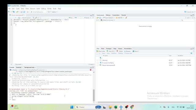 Как запустить первый тьюториал в learnr