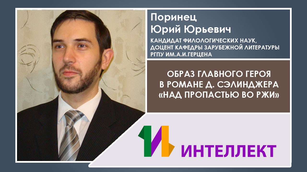 Образ главного героя в романе Д. Сэлинджера «Над пропастью во ржи» Юрий Юрьевич Поринец - кандидат филологических наук, доцент кафедры зарубежной литературы РГПУ им.А.И.Герцена