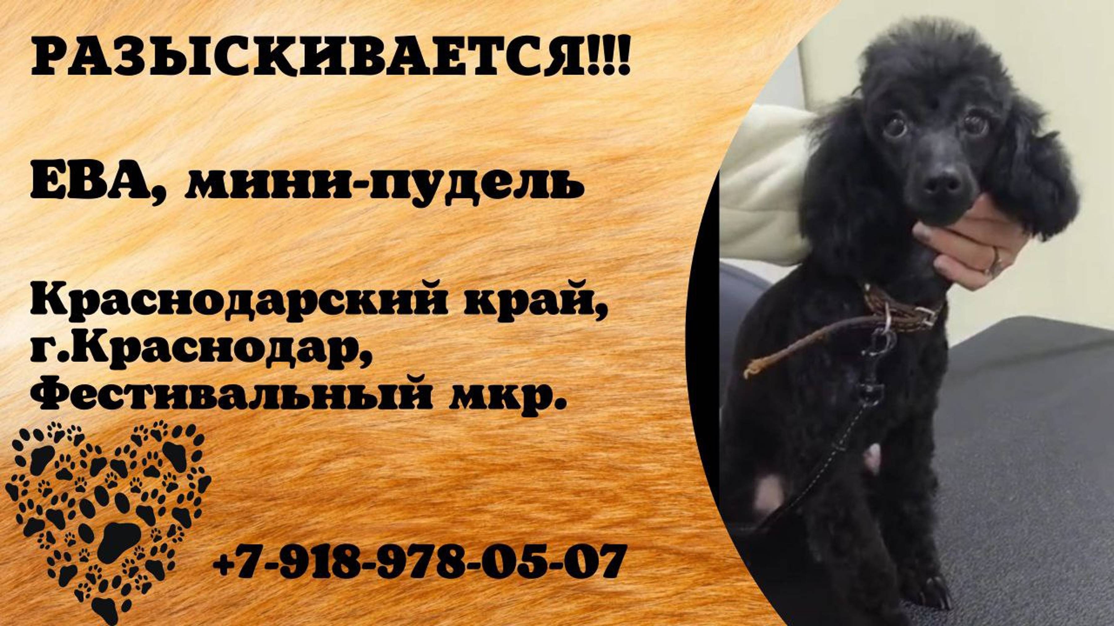Пропала собака! ЕВА. Мини-пудель. Краснодарский край, г.Краснодар
