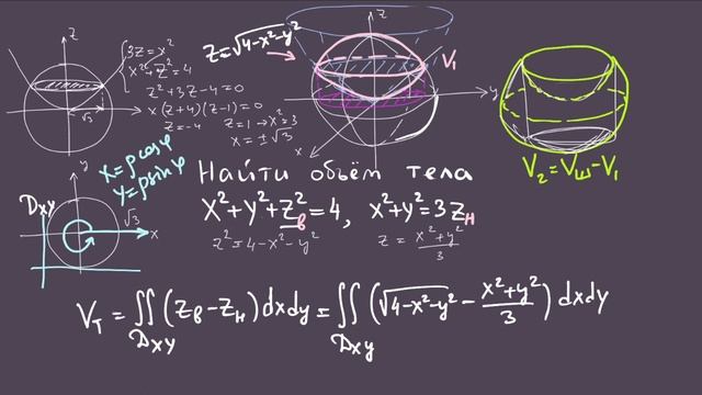 Объём тела, ограниченного сферой и параболоидом. Берман 3615