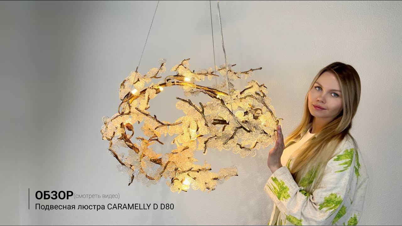 Красивая ручная работа из новой коллекции подвесных люстр CARAMELLY. Она состоит из разных моделей, здесь вы видите люстру в варианте исполнения D размером 80 см. Каркас из металла в бронзовом оттенке, так же у нас есть на канале целое видео с образцами, поэтому вы с можете выбрать для себя в любом другом оттенке. У него интересный дизайн- имитация веточек, которые усыпаны подвесками из рифлёного прозрачного стекла. Подсвечиваются подвески с помощью лампочек G9, в количестве 10 штук. Ссылка - https://imperiumloft.ru/dizajn-loft/194936-23.html