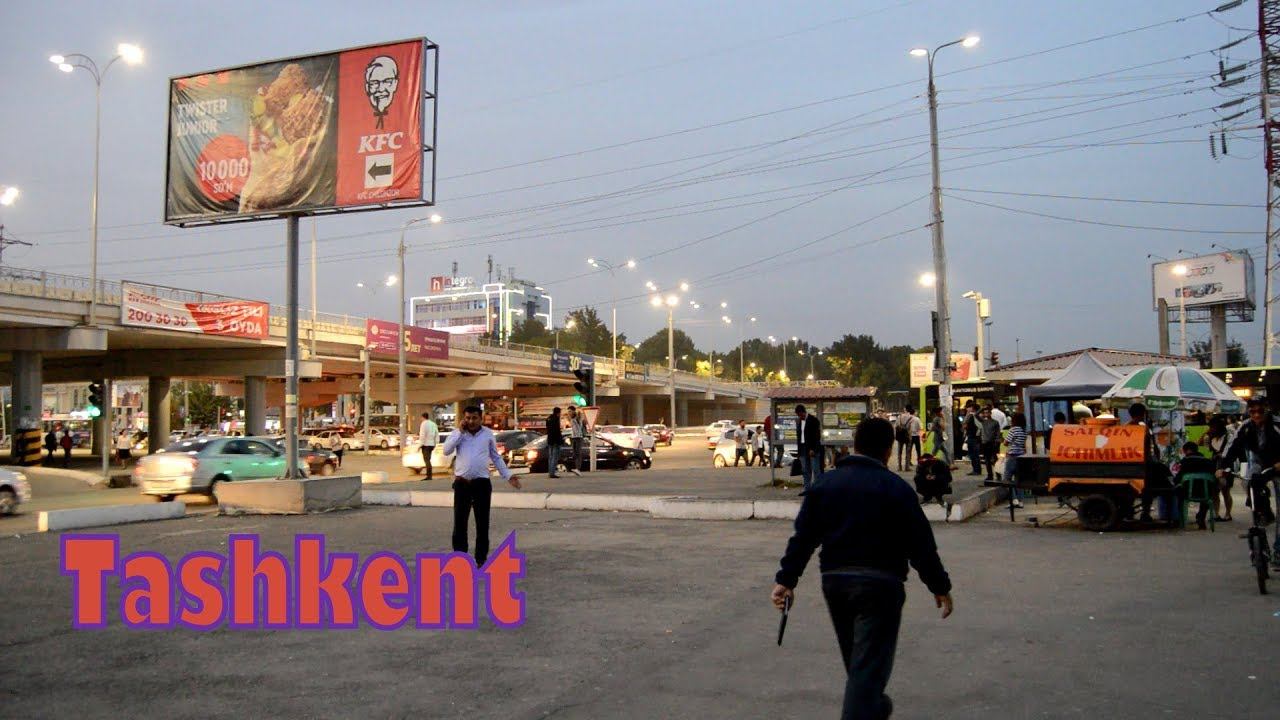 Район метро Чиланзор в Ташкенте вечером