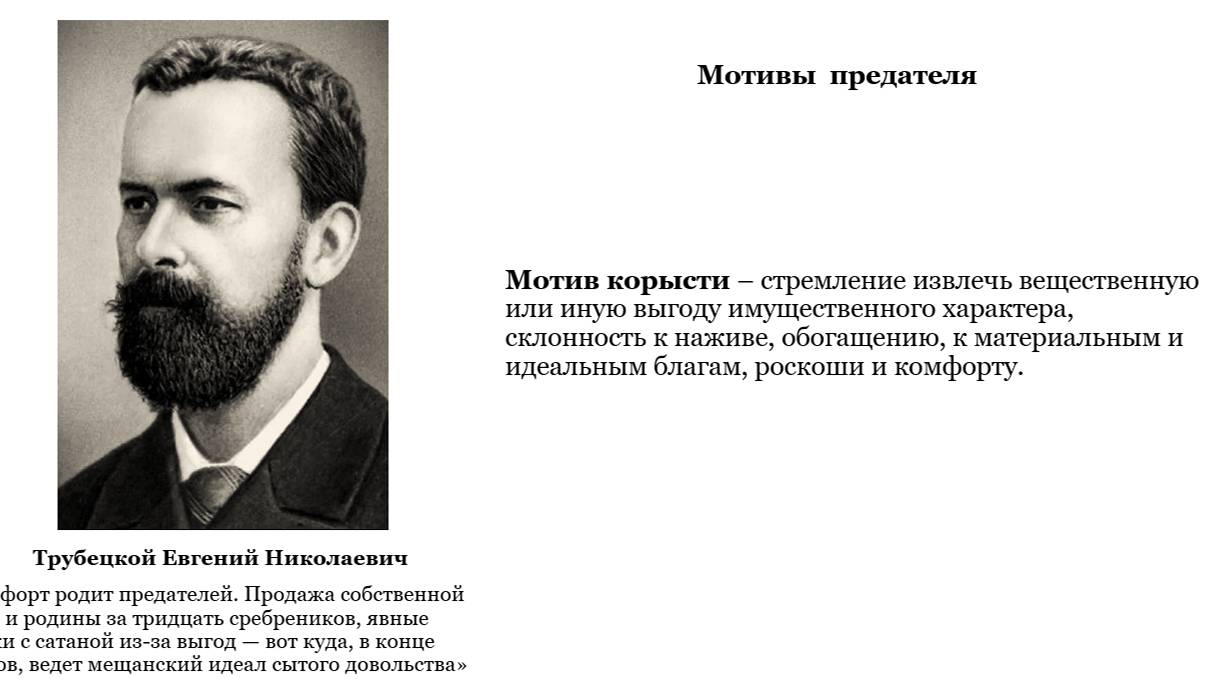 00:10 Три ключевых понятия: предательство, предатель, предаваемый. 01:10 Суть предательства. 02:50 Черты характера предателя. Агрессивность. 04:20 Авантюризм. Тщеславие. 05:24 Самовлюблённость. Гордыня. 06:30 Уклончивость. Хитрость. 07:40 Завистливость. Лицемерие. 08:55 Мотивация и мотивы предательства. 10:44 Мотив эгоистический. 11:34 Мотив самоутверждения. 12:54 Мотив власти. 14:00 Мотив корысти. 14:50 Мотив защиты. 15:57 Мотив самооправдания. 17:11 Психологические мишени предательства. Верность. Преданность 18:25 Доверие. Долг. Обязанность. 19:56 Литература.