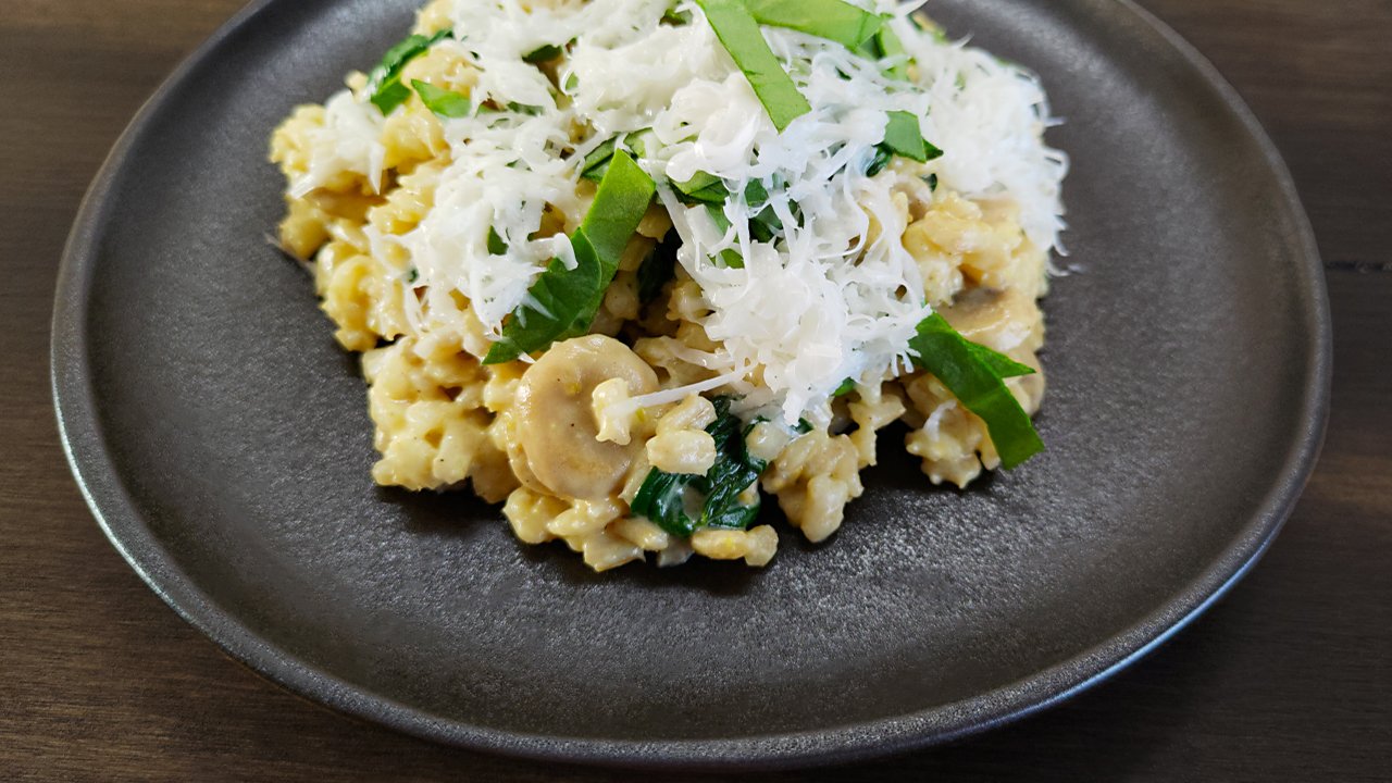 Перловка с грибами и шпинатом!