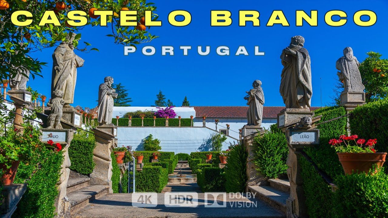 Каштелу Бранку, Португалия 4K: Очень красивый город и сады Епископского дворца