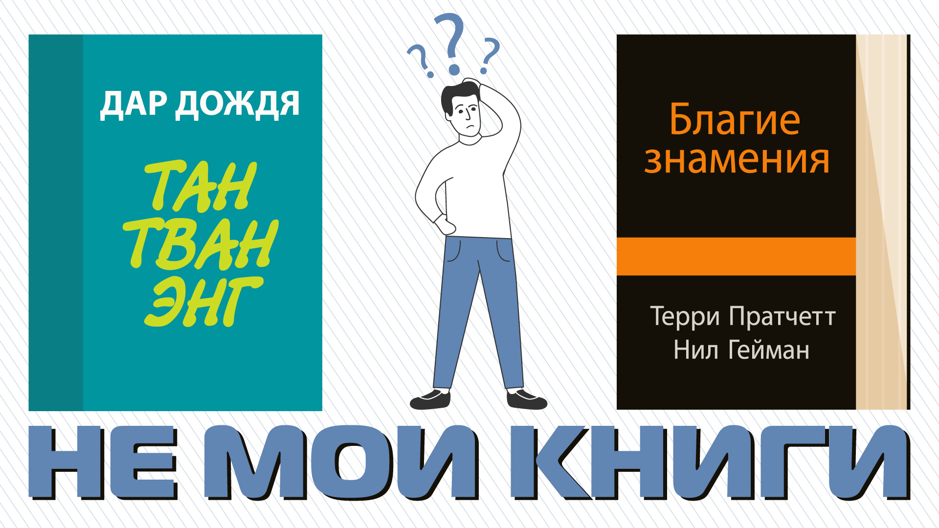 Привет! Сегодняшний рассказ об одной очень плохой книге и двух неоднозначных: Благие знамения Терри Пратчетта и Нила Геймана. Дар Дождя Тан Тван Энга. Тайм-код: 00:00 Вступление 00:29 Книга "Плохая" 03:25 Книга "Дар Дождя" 07:24 Книга "Благие знамения"