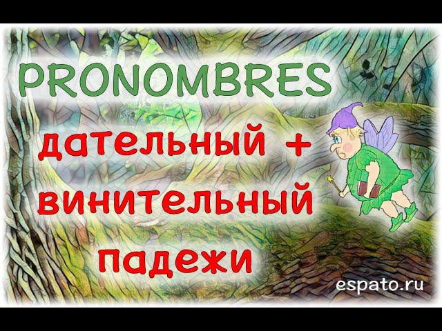 Записывайтесь к нам на бесплатное занятие! Такого обучения Вы еще не встречали! Наша программа - уникальное сочетание современных технологий, живого языка и высокого профессионализма преподавателей: https://espato.ru/maestro/ Это новая технология, только наша платформа позволяет выстроить буквально каждое занятие под Вас и Ваши интересы - убедитесь сами, приходите на пробное! Если Вам интересен испанский, Вы не пожалеете, что решили учить его с нами. Дательный и винительный падежи в одном предложении. Здесь можно сделать упражнения к видео: http://espato.ru/lesson.php?id=13-4 Автор урока: http://vk.com/nikluch