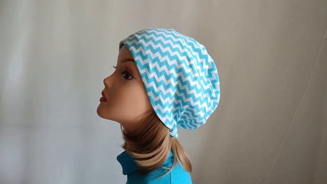 Бини с ТРЕССАМИ Хлопок трикотаж Цвет белый с голубым зигзагом Трессы данный артикул можно ЗАКАЗАТЬ СШИТЬ именно “ПОД СЕБЯ”, т.е. с ВОЛОСАМИ НА ВЫБОР из ИМЕЮЩИХСЯ в НАЛИЧИИ нужного Вам цвета и длины И из ТРИКОТАЖНОЙ ТКАНИ НА ВЫБОР любого сшитого из трикотажа артикула Пожалуйста, свяжитесь с нами любым удобным способом (обратный звонок/он-лайн чат/WhatsApp значки на сайте, или по телефону сайта) и консультант поможет с выбором и примет Ваш заказ на такую шапку. Шьем быстро. Цена заказанной “под себя” шапки не отличается от цены на данный артикул Описание общее Новинка, такого еще не было! Головной убор из хб трикотажа в один слой (летний вариант) оригинального неизбитого кроя, с небольшим “навесом” сзади, с вшитой внутрь тесьмой трессов по краю. Волосы к голове не прилегают, не создают ощущения дискомфорта. В целом создаётся впечатление волос из-под шапочки Состав_верх 100% хб трикотаж Описание модели и Способ фиксации    Посмотрите видео КАК  НОСИТЬ эту модель Головной убор представляет собой однослойную шапку бини с трессами, аккуратно вшитыми с изнанки по краю головного убора. Бини с ТРЕССАМИ Хлопок трикотаж