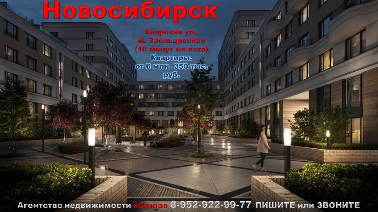 Подпишитесь на нас. Благодарим !!! https://www.youtube.com/@nedvigimoct/videos - мы на Ютубе https://dzen.ru/nedvigimoct?tab=longs&utm_referrer=dzen.ru - мы на Дзене https://rutube.ru/channel/27083000/videos/ - мы на Рутубе https://vk.com/club223108371 - мы в ВК https://ok.ru/lyubayan - мы в Ок Каталог новостроек Новосибирска - https://nedvigimoct.allrealty.pro/?regionId=54#catalog Агентство недвижимости «СОЮЗ» Покупайте: квартиру в Новосибирске. Кедровая ул., м. Заельцовская (10 минут на авто) Агент по новостройкам: 89529229977 (WhatsApp) Цены на квартиры точно такие же как и у застройщика. Квартиры продаются БЕЗ РИЭЛТОРСКОЙ КОМИССИИ !!!. 1к. квартиры: от 6 млн. 350 тыс. руб. Ежемесячный платеж: 30 419 руб. при ставке 6% Площадь общая: 31,75 м2 - 76,15 м2 2к. квартиры: от 9 млн. 650 тыс. руб. Ежемесячный платеж: 46 227 руб. при ставке 6% Площадь общая: 62,25 м2 - 180,69 м2 3к. квартиры: от 13 млн. 710 тыс. руб. Ежемесячный платеж: 65 677 руб. при ставке 6% Площадь общая: 93,01 м2 - 184,01 м2 Срок сдачи: 4 кв. 2024 - 4 кв. 2025 Срок выдачи ключей: 3 кв. 2025 - 3 кв. 2026 Договор: ДДУ Тип дома: кирпично-монолитный Тип отделки: подготовка под чистовую отделку Парковка: есть Потолки: 2,74 м. Преимущества:Экологически чистый район. Благоустроенная территория. Подземный паркинг. Большой выбор планировочных решений. Инфраструктура района. Описание комплекса: Жилой комплекс расположен в тихом зелёном районе в 20 минутах от центра города. Рядом - большой парк и территория под строительство детского сада. Отсутствие промышленных предприятий также способствуют благоприятной экологии района. Авторская архитектурная концепция, продуманная организация пространства, современный дизайн входных групп создают атмосферу исключительного комфорта. В отделке строгого, но элегантного фасада использованы дорогостоящие материалы, экологически чистые и стойкие к погодным условиям. Архитектурное остекление и декоративные элементы придают зданию лёгкость и динамику. Большой выбор планировочных решений, в том числе особенных: квартиры на первом этаже с отдельным входом, квартиры с террасами, квартиры с зенитными окнами, квартиры с большими эркерами. Проектом предусмотрено благоустройство территории: размещение детских игровых и спортивных площадок; озеленение посевом газонов и посадкой высокорослых и низкорослых кустарников и деревьев; оборудование декоративных лавочек, декоративных столбов освещения, малые формы ландшафтного дизайна. Инфраструктура района: гипермаркеты Леруа-Мерлен, Лента, Пятерочка, школа, остановки общественного транспорта.
