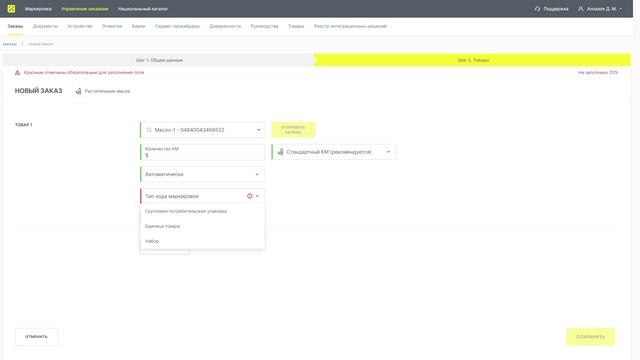 Заказ кодов маркировки "Растительные масла"
