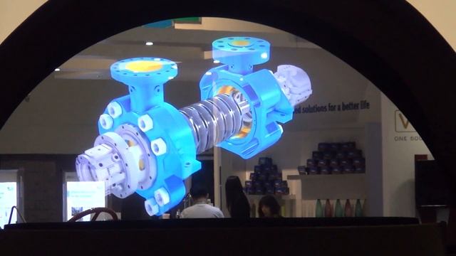 Large scale hologram projector exhibited at Power Gen. https://www.tradeshowhologram.com This large scale dual sided interactive hologram projector featured multiple presentations to attract attention to the SPXFLOW booth at Power Gen 2016 in Orlando FL.