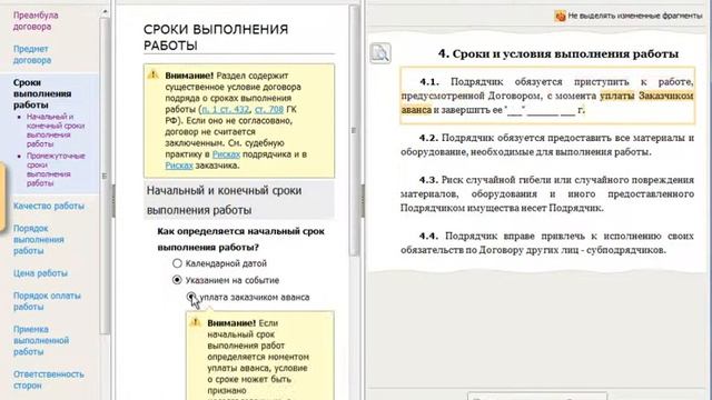 Небольшой пример работы с онлайн-сервисом Консультант Плюс - Конструктор договоров.