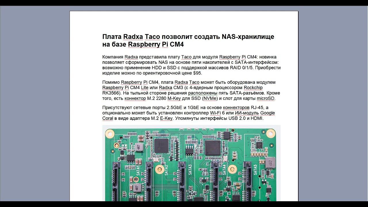 Плата Radxa Taco позволит создать NAS-хранилище на базе Raspberry Pi CM4