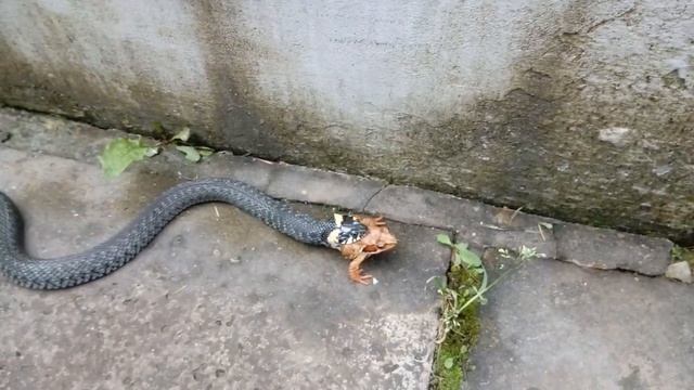 Уж ест лягушку.