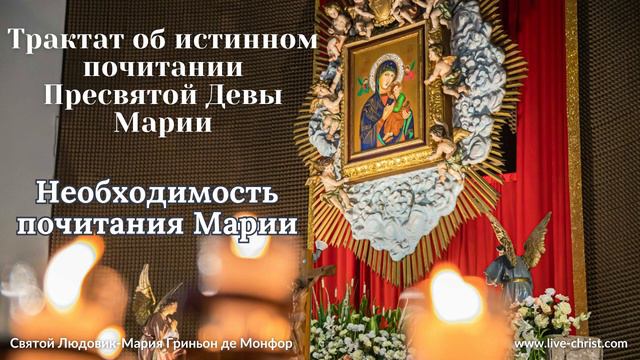 Трактат об истинном почитании Пресвятой Девы Марии. Святой Людовик-Мария Гриньон де Монфор. Почему нам необходимо почитать Пресвятую Деву Марию? 1. Богородица - Мать нашего Спасителя: Пресвятая Дева Мария - не просто женщина, но Мать Иисуса Христа, Сына Божьего. Это делает ее уникальной и почитаемой личностью в христианстве. Она сыграла ключевую роль в истории спасения человечества, родив и вскормив Спасителя. 2. Образец веры и смирения: Дева Мария является образцом веры, смирения и послушания Богу. Она с радостью приняла волю Божию, став Матерью Спасителя. 3. Заступница и ходатайница: Христиане верят, что Дева Мария, будучи Матерью Иисуса, обладает особой благодатью и может ходатайствовать за людей перед Богом. Она - наша заступница и помощница в молитвах. 4. Утешение и помощь: Пресвятая Дева Мария - источник утешения и помощи для всех верующих. Она помогает нам в трудную минуту, дарует надежду и укрепляет нашу веру. 5. Пример для подражания: Дева Мария - пример для подражания для всех христиан. Она учит нас любви к Богу, ближнему, смирению, послушанию и другим добродетелям. 6. Единение с Церковью: Почитание Пресвятой Девы Марии - это часть нашей христианской веры и традиции. Она объединяет нас с Церковью и со всеми верующими во Христа. 7. Источник духовных даров: Через молитвы к Деве Марии мы можем получить духовные дары, такие как вера, надежда, любовь, мудрость, терпение и другие. 8. Защита от зла: Пресвятая Дева Мария - наша защитница от зла. Она помогает нам противостоять искушениям и греху. 9. Путь к спасению: Почитание Девы Марии - это путь к спасению. Она помогает нам приблизиться к Богу и стать лучше. 10. Любовь и благодарность: Почитание Пресвятой Девы Марии - это выражение нашей любви и благодарности за ее роль в истории спасения человечества. Важно: Почитание Девы Марии не означает поклонение ей. Мы почитаем ее как Мать Божию, но не обожествляем. 33-ДНЕВНЫЕ ДУХОВНЫЕ УПРАЖНЕНИЯ - Посвящение себя Иисусу Христу через Марию: https://svetmariji.ru/novosti/posvyashhenie-sebya-iisusu-hristu-cherez-ruki-marii https://live-christ.com