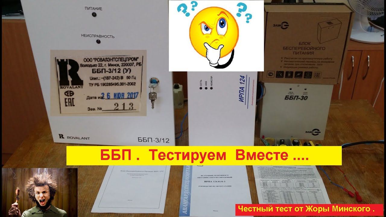 Тестируем источники питания ББП . 3 разных ББП . Начало .Вступление . 1. ББП-3/12 "ROVALENT" - Честный Тест . ООО " Ровалентспецпром" РБ . г.Минск https://youtu.be/9abLzTAdQDI 2. ИРПА 124.01/0-3 . ББП . Честный Тест. ООО "Авангардспецмонтажплюс" РБ . г.Минскhttps://youtu.be/N77RNv2j0Nk 3. ББП - 30 . "Элис". РФ г.Тверь . Честный Тест . https://youtu.be/YasHRSI7LQQ Не учите меня жить, лучше поддержите канал материально ! Помочь денежкой от Души ! https://yoomoney.ru/to/410011297270670 ПРЕДУПРЕЖДАЮ ! Мат, хамство ,Троллинг и оскорбления в комментариях - Memento mori !!! СРАЗУ в Лоб !!! И пожизненный БАН ! Смотрим ВСЕ Видео про ИБП !!!!! 1. Не включается , не работает ИБП . Что делать ? Всё Просто -Делаем Вместе ! Серия № 1 . https://youtu.be/OsWunTwMHH8 23.04.2020 2. Не Включается ИБП - IPPON 1400 (Smart power pro). Что делать ? Серия №2 https://youtu.be/erlvxb4F-S8 24.04.2020 3. Типы источников бесперебойного питания ИБП . Просто о Сложном . Серия №3 . https://youtu.be/21btDZOKL0Q 25.04.2020 4. ИБП IPPON 1400 - "Нюхаем" . Часть 1 - Научная работа . Меряем t автономной работы и V на аккумах . https://youtu.be/p2RWcVOciEc 30.04.2020 5. ШОК !!! Почему Дохнут аккумуляторы в Бесперебойниках ( ИБП ) ??! Одна из Главных Причин !! Смотрим https://youtu.be/vn_5UlaTZ_s 01.05.2020 6. ИБП IPPON 1400 - "Нюхаем" . Часть 2 . Меряем Тепловые режимы ! https://youtu.be/W24isv-8sHA 03.05.2020 7. Один шаг до Пожара ! Сюрприз от Китайцев - ИБП "IPPON 1400" .! https://youtu.be/MYODRi5yVCk 06.05.200 8. ИБП APC Back UPS CS 500VA . Сделано в США . Зачем Выбрасывать ??!! https://youtu.be/VJ7iqkAl4tg 08.05.2020 9. Не Включается ИБП BNT-500A - Вскрываем и смотрим что внутри ...Ещё послужит https://youtu.be/C4B0bJmjQlk 17.05.2020 10. Мощность ИБП . Считаем Правильно ! Просто о Сложном ! ИБП 800 VA - Это сколько по Простому ? https://youtu.be/pNwZeU1hmdU 29.10.2020 11. Сколько работает ИБП в автономном Режиме ? Просто о Сложном ... https://youtu.be/8z0a_YlYxZM 30.10.2020 12. Автомобильный ИНВЕРТОР 12 v/220v из ИБП !!! Делаем САМИ ! Дёшево и Сердито ! https://youtu.be/n-qMhZxrFpY 21.11.2020 13. ИБП - Жив Курилка ! Как Самому протестировать Любой ИБП ! https://youtu.be/V4AJG0g1Xuk 21.12.2021 14. Замена Аккумулятора в ИБП ! Это должен Знать и Уметь Каждый ! На примере UPS ES 700 . Делаем Сами ! https://youtu.be/Bk1R-mq6QEM 29.01.2021 15. Аккумулятор ZUBR 12V 9Аh . Измеряем Ёмкость ! Сколько в натуре ?Потом В ИБП и проверим время работы https://youtu.be/uzz_GFoI7lQ 09.12.2022 16. Сколько Работает ИБП ? Расчет Времени . Часть №2 . Мой Ответ Тупому тик-току ! Сложно о Простом ! https://youtu.be/5I-i2L7yWUw 02.01. 2023 17. Как Убить Аккумулятор ? 22 раза разрядили в Ноль ! Что будет с Емкостью ? Жора Минский покажет ВСЁ ! https://youtu.be/KzdiUvcR7x8 14.01. 2023 18 . ИБП APC 500 .Отключаем Таймер (пробуем ). Настраиваем пороги срабатывания.Советы из Ютуба.Ну на х.. https://youtu.be/Z1-mYWK8WDk 06.01. 2023 19. ИБП APC Back UPS CS 500 . Двигатель и Квадратная Синусоида ! Что Есть на выходе Простого ИБП ? https://youtu.be/oI6HhgNKjHU 10.01.2023 20. ИБП FSP EP1500 - Не Включается ? Не БЕГИ в Сервис ! Попробуй Сделать САМ ! Сама частая причина ! https://youtu.be/7WOQOCmk9cI 21.01.2023 21. ИБП - Отключаем Зуммер ! Самый простой способ без паяльника ! В Любом Бесперебойнике ! https://youtu.be/qHDqgAIoV6w 22.01. 2023 22. ИБП APC Back UPS CS 500 . Светодиод Вместо Зуммера ? Таймера уже НЕТ ! Жора Минский покажет КАК ! https://youtu.be/d23wV1aphxw 23.01.2023 23. ИБП APC 500 - Таймер Отключён ! Смотрим Как Мы отключили таймер в ИБП APC Back UPS CS 500 ! https://youtu.be/-CGHi3nZVH4 26.01. 2023 24. Стабилизатор напряжения "Украина-2" СН-315 . Самый Полный Обзор и ТЕСТ Всех Параметров! И ЕЩЁ ... https://youtu.be/CC_KTcXf6_U 11.02.2023 25. ИБП APC 500 . Крутой Тест. 200Вт ! 3 часа ! Всё Работает ! Залипательное Видео для Умных Людей ! https://youtu.be/VqDDY3pO34U 12.02.2023 26. ИБП APC 500 ! Таймера НЕТ ! Мозгов НЕТ ! Считай калека ! Одно вылечили - другое покалечили ! https://youtu.be/gizcGyir_VY 13.02.2023 ======================================== Сериал о Зарядном Устройстве " Вымпел 55 " . Часть № 1 ВЫМПЕ