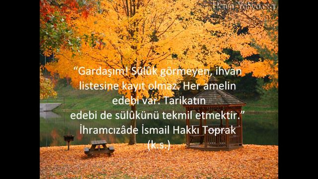 "Gardaşım! Sülûk görmeyen, ihvan listesine kayıt olmaz. Her amelin edebi var. Tarikatın edebi de sülûkünü tekmil etmektir."