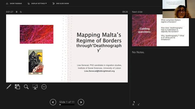 As part of the 'International Conference 'Bodies on the Edge: Life and Death in Migration', 28 - 30 April 2022, Maison Française d'Oxford Marianna Karakoulaki: A Political Thanatos: Migratory Deaths in the Greek Borderlands Lisa Senecal: Mapping Malta's Regime of Borders through Deathnography