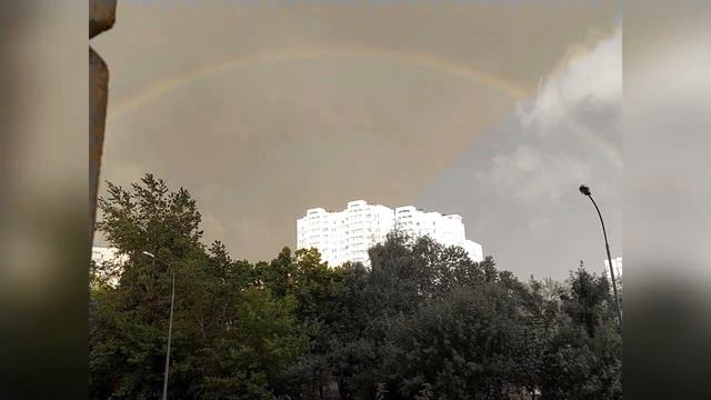 Дождь в Москве...В небе радуга...Звучит песня "Радуга" в исполнении Жанный Агузаровой.