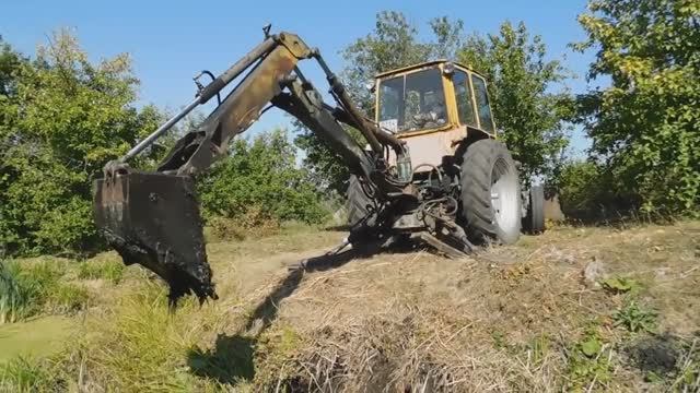 Копаем пруд в саду экскаватором ЮМЗ! Часть-1. Аn excavator digs a pond