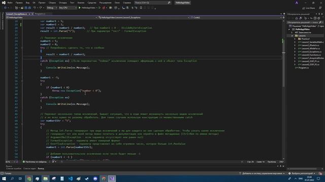 Работа с исключениями c#. Типы исключений, перехват исключений. Ссылка на плейлист: https://www.youtube.com/playlist?list=PLnEbxHpyJRTv9OAAt6PheFeywLgAhd27J #csharp #csharpprogramming #unity #study #programming