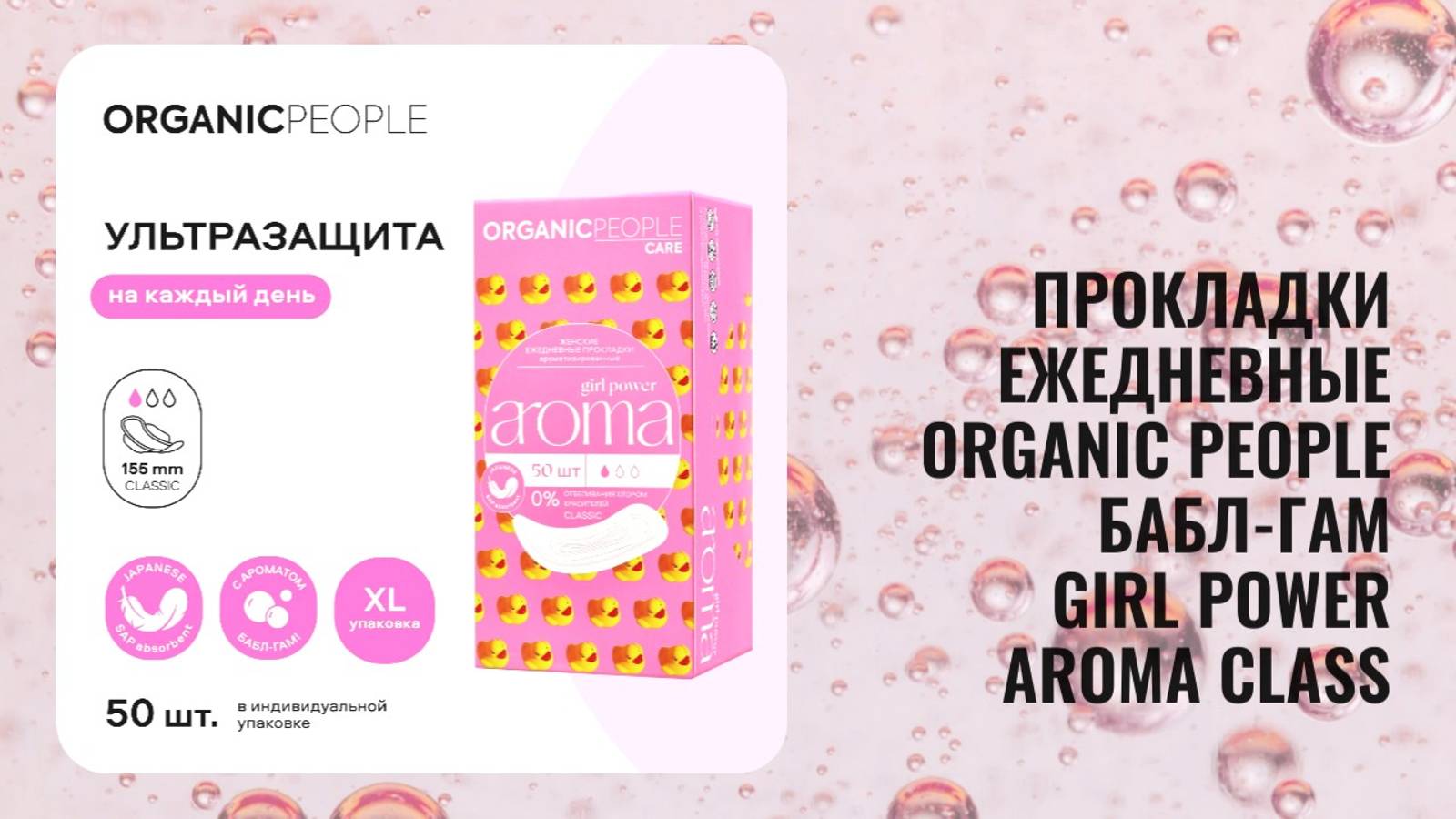 Прокладки ежедневные Organic People Бабл-гам Girl Power Aroma Class 50шт