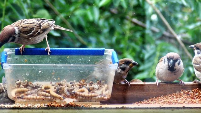 Воробьи в кормушке #sparrow #зофобас #superworm