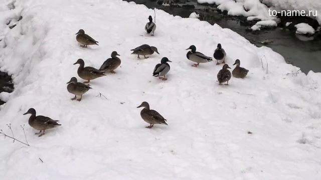 Утки, семья из 5 селезней и 10 уточек