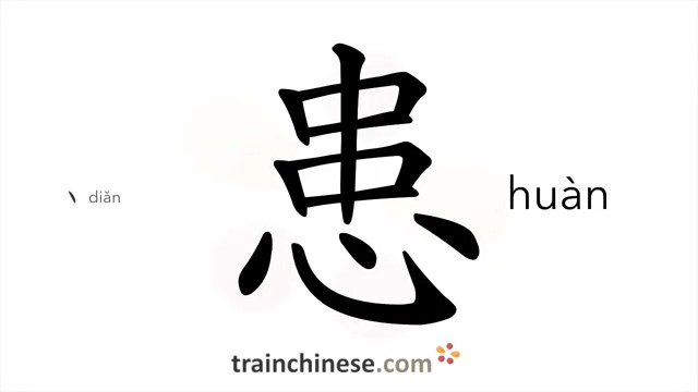 患 (huàn) trouble; danger; misfortune; to suffer, to worry