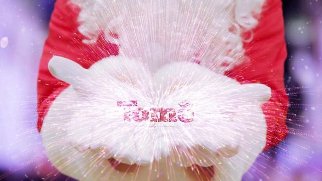 Анимация логотипа Tome. Санта Клаус показывает в руках надпись Томе. Надпись может быть любая по вашему заказу.