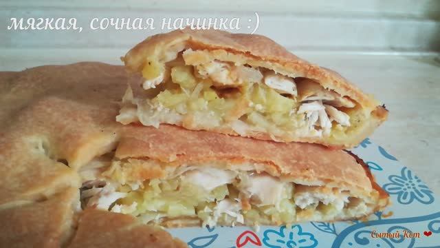 Картофельный пирог с грудкой. На сырой начинке, тонкое тесто