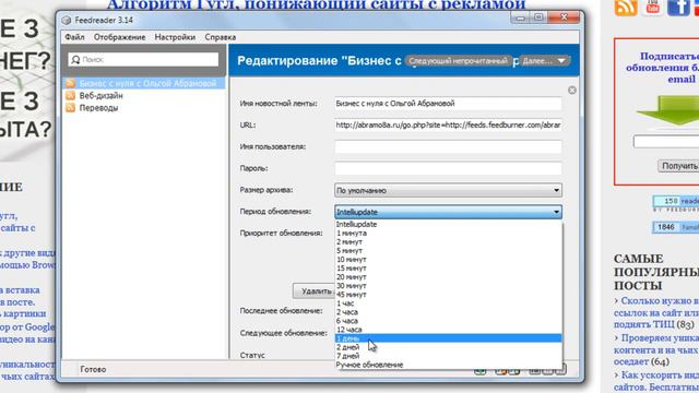 Настройки программы FeedReader для чтения RSS-новостей в одном месте