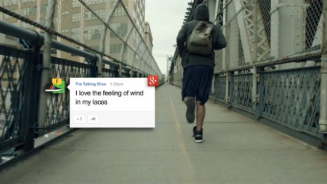 Еще один умный аксессуар Google, сделанный вместе с Adidas, — говорящие кроссовки, связанные с телефоном, которые якобы знают 250 фраз и в более-менее язвительной манере напоминают владельцу о том, что надо больше двигаться. Спрашивают: «Ты что, статуя?», — если ничего не происходит, и подбадривают: «Уже лучше» или «Люблю чувствовать ветер в своих шнурках», — если человек бежит. Впрочем, это не обязательно означает, что в Google совсем сошли с ума: кроссовки пока не собираются продавать, а их деморолик надо, вероятно, считать самопародией, снятой ради лайков.